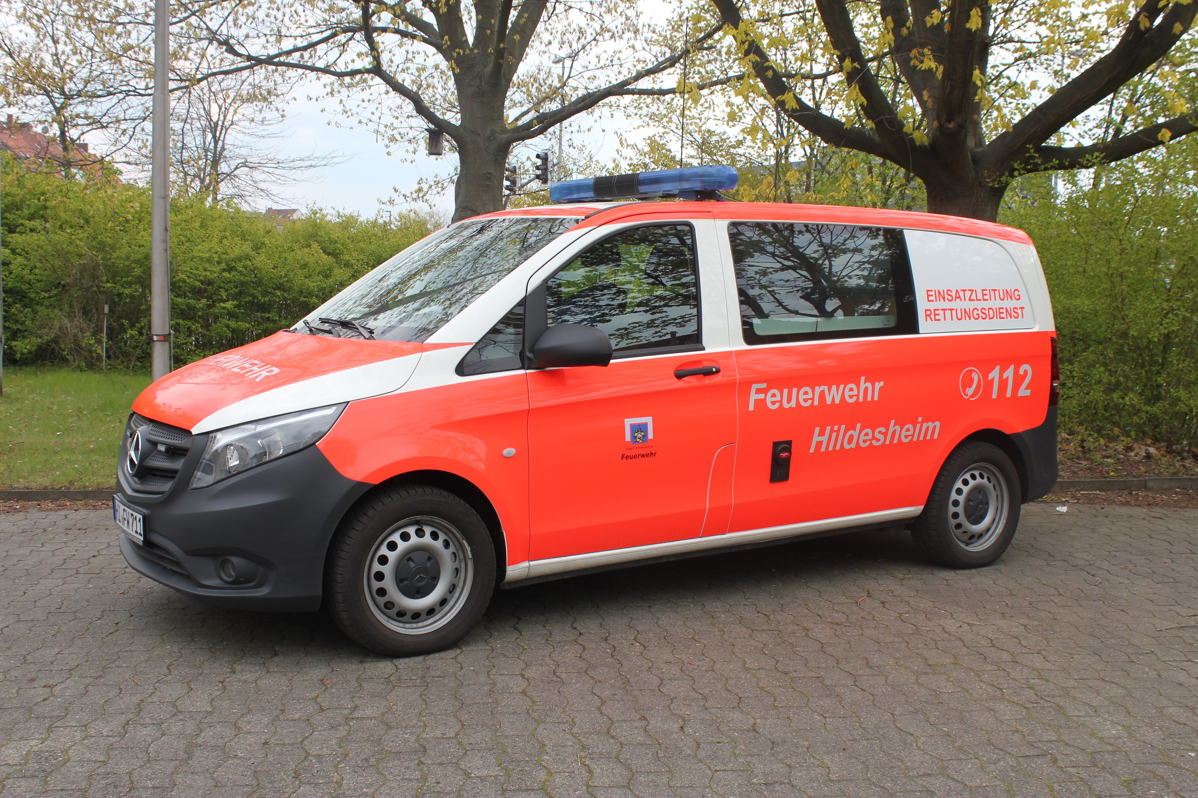 Der ELW 1, aufgebaut auf einem Mercedes Vito, ist das Führungsfahrzeug der Berufsfeuerwehr Hildesheim. Die Beladung beinhaltet alle modernen Kommunikationsmittel, die für die Einsatzführung vor Ort erforderlich sind. So sind neben den üblichen Funkgeräten in analoger und digitaler Ausstattung, Funktelefon, Fax und ein Laptop mit Anbindung an die Feuerwehr Einsatz- und Rettungsleitstelle vorhanden. Auf dem Laptop sind neben einer Gefahrstoffdatenbank und Fahrzeug- und Funklisten auch Gebäude-, Objekt und Hydrantenpläne vorhanden. Eine Wärmebildkamera mit Thermographie Funktion, ein Gasmesskoffer und ein Atemschutzgerät, sowie diverse Sicherungsgeräte runden die Beladung ab.